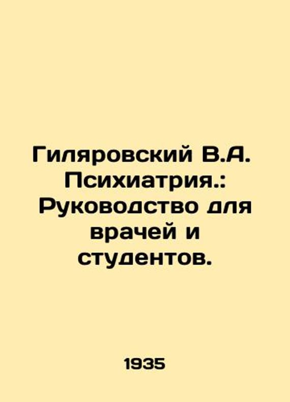 Gilyarovsky V.A. Psychiatry: A Guide for Physicians and Students. In Russian /Gilyarovskiy V.A. Psikhiatriya.: Rukovodstvo dlya vrachey i studentov. 125 drawings in the text Editor L. Altshuller. M., L.: State Medical Publishing House 1935. 750 p. We have thousands of titles and often several copies of each title may be available. Please feel free to contact us for a detailed description of the copies available. SKUalbd5a32424f3d02588.