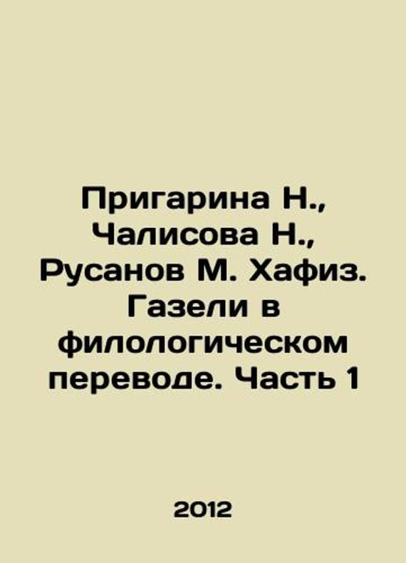 Prigarina N., Chalisova N., Rusanov M. Hafiz. Gazelles in philological translation. Part 1 In Russian /Prigarina N., Chalisova N., Rusanov M. Khafiz. Gazeli v filologicheskom perevode. Chast 1 M RGGU 2012. We have thousands of titles and often several copies of each title may be available. Please feel free to contact us for a detailed description of the copies available. SKUalbd5c038cbfb0a0eae.