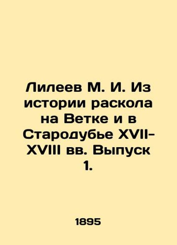 Lileev M. I. From the history of the split on the Branch and in Starodubya in the seventeenth-eighteenth centuries. Issue 1. In Russian (ask us if in doubt)/Lileev M. I. Iz istorii raskola na Vetke i v Starodube XVII-XVIII vv. Vypusk 1. Accurate reproduction of the publication: Kyiv 1895. 614 p. We have thousands of titles and often several copies of each title may be available. Please feel free to contact us for a detailed description of the copies available. SKUalbd5e1d0716d9c86e9