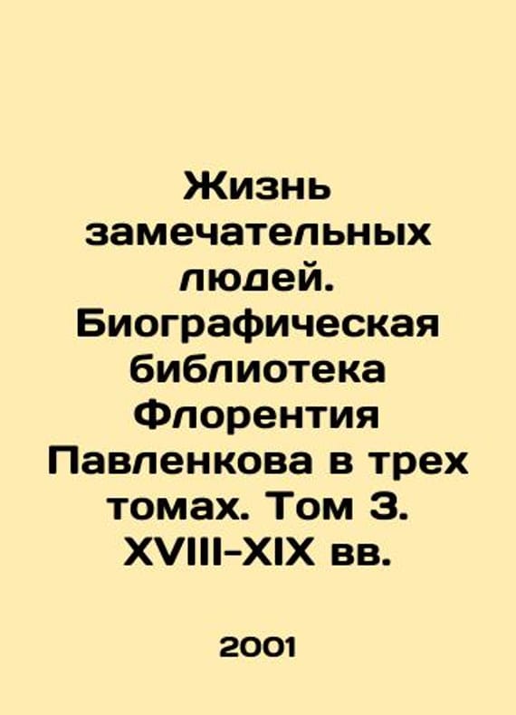 The lives of remarkable people. Florentia Pavlenkova Biographical Library in three volumes. Volume 3. XVIII-XIX centuries. In Russian /Zhizn zamechatelnykh lyudey. Biograficheskaya biblioteka Florentiya Pavlenkova v trekh tomakh. Tom 3. XVIII-XIX vv. Spb.Series: F. Pavlenkovs Bibliographic Library. Under the general editing of V.V. Ovchinnikov. Illustration M OLMA-press 2001. We have thousands of titles and often several copies of each title may be available. Please feel free to contact us for a detailed description of the copies available. SKUalbd62dc219e2839a4a.