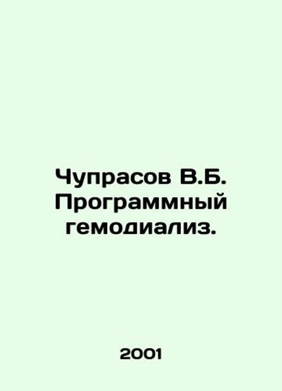Chuprasov V.B. Program hemodialysis. In Russian /Chuprasov V.B. Programmnyy gemodializ. St. Petersburg, Foliant, 2001, 254 p. We have thousands of titles and often several copies of each title may be available. Please feel free to contact us for a detailed description of the copies available. SKUalbd6413f5e1ef7c29f.