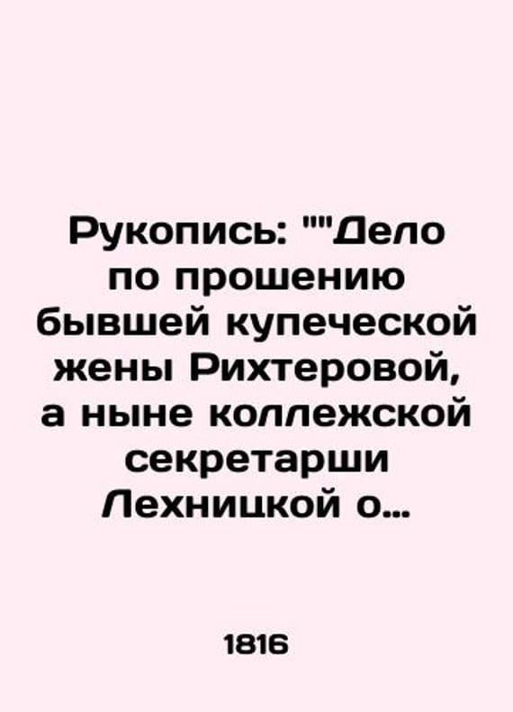 Manuscript: The case is at the request of Richterova's former merchant's wife and now Lehnitskaya's college secretary for a monetary claim against members of the local magistrate. In Russian (ask us if in doubt)/Rukopis': Delo po prosheniyu byvshey kupecheskoy zheny Rikhterovoy a nyne kollezhskoy sekretarshi Lekhnitskoy o denezhnoy pretenzii na chlenov zdeshnego magistrata. Sat. 1816 12 pages 2234.5 cm. SKUalbd6417da01b315e17.