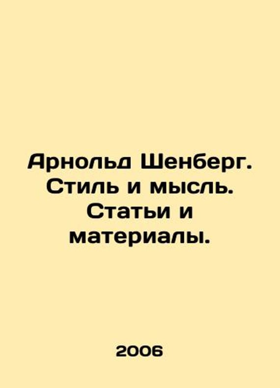 Arnold Schoenberg. Style and Thought. Articles and Materials. In Russian (ask us if in doubt)/Arnold Shenberg. Stil i mysl. Stati i materialy.Compilation translations comments by N. Vlasova and O. Loseva. Moscow: Composer. 2006. 528 p.. SKUalbd6571ba994111464.