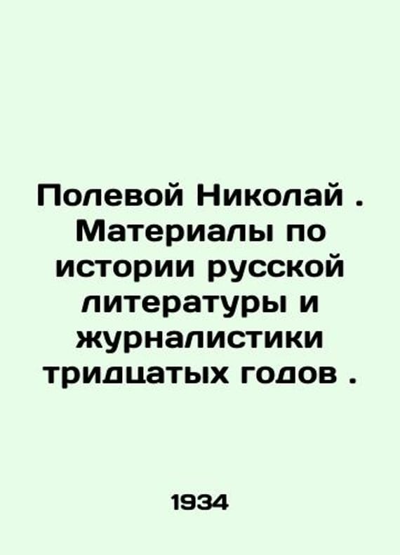 Nikolai Field. Materials on the History of Russian Literature and Journalism in the Thirties. In Russian /Polevoy Nikolay. Materialy po istorii russkoy literatury i zhurnalistiki tridtsatykh godov. Editorial Board, introductory article and comments by V. Orlov. Leningrad Writers Publishing House in Leningrad. 1934. We have thousands of titles and often several copies of each title may be available. Please feel free to contact us for a detailed description of the copies available. SKUalbd681ea9f6de54f7a.