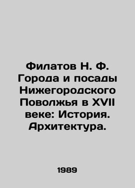 N. F. Filatov Cities and Plantations of the Nizhny Novgorod Volga Region in the 17th Century: History. Architecture. In Russian /Filatov N. F. Goroda i posady Nizhegorodskogo Povolzhya v XVII veke: Istoriya. Arkhitektura. Gorky: WWII, 1989. We have thousands of titles and often several copies of each title may be available. Please feel free to contact us for a detailed description of the copies available. SKUalbd69a69d2b55c4a02.
