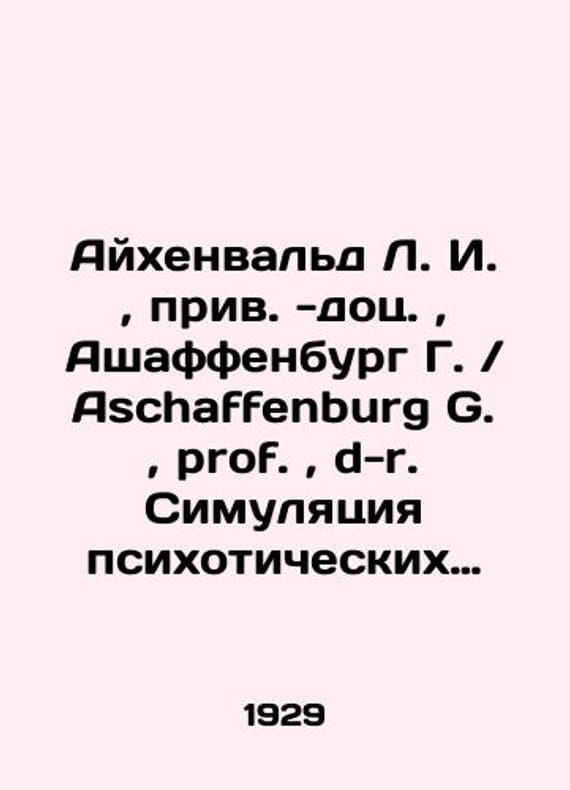 Eichenwald L. I. prev. Aschaffenburg G. prof. d. Simulation of psychotic states. Psychiatry and criminal law (Translation from German prev. L. I. Eichenwald) In Russian (ask us if in doubt)/Aykhenvald L. I. priv. -dots. Ashaffenburg G. / Aschaffenburg G. prof. d-r. Simulyatsiya psikhoticheskikh sostoyaniy. Psikhiatriya i ugolovnoe pravo (Perevod s nemetskogo priv. -dots. L. I. Aykhenvalda) Odessa: Authors Edition Printing House Izvestia 1929. 48 p. SKUalbd69ca69900c90e6f.