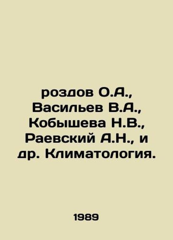 Rozdov O.A., Vasiliev V.A., Kobysheva N.V., Raevsky A.N., et al. Climatology. In Russian /rozdov O.A., Vasilev V.A., Kobysheva N.V., Raevskiy A.N., i dr. Klimatologiya.L. Hydrometeo Issuance 1989.We have thousands of titles and often several copies of each title may be available. Please feel free to contact us for a detailed description of the copies available. SKUalbd6af2b5bfda38c79.