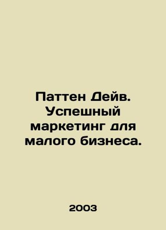 Patten Dave. Successful marketing for small businesses. In Russian /Patten Deyv. Uspeshnyy marketing dlya malogo biznesa. Translated from English: Universities of Business. M. FAIR-PRESS. 2003.We have thousands of titles and often several copies of each title may be available. Please feel free to contact us for a detailed description of the copies available. SKUalbd73884ebb9b0763d.