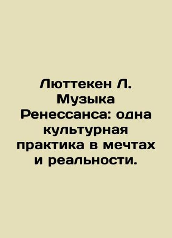 Lutteken L. Renaissance Music: One Cultural Practice in Dreams and Reality. In Russian /Lyutteken L. Muzyka Renessansa: odna kulturnaya praktika v mechtakh i realnosti. Modern Europeanism series, St. Petersburg Bibliorossika, 2023, 324s. We have thousands of titles and often several copies of each title may be available. Please feel free to contact us for a detailed description of the copies available. SKUalbd7390d6e667a11f5.