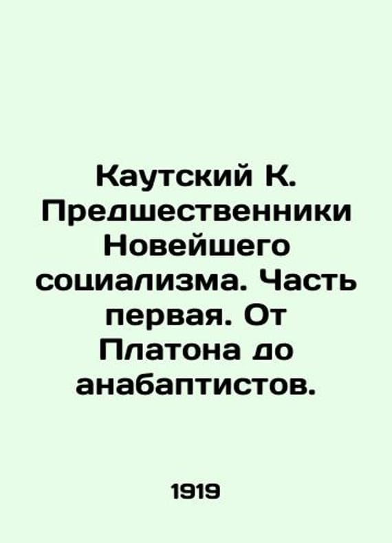 Kautsky K. The predecessors of the New Socialism. Part One. From Plato to to the Anabaptists. In Russian /Kautskiy K. Predshestvenniki Noveyshego sotsializma. Chast pervaya. Ot Platona do anabaptistov. Newly verified and corrected translation of E. and I. Leontievs. A series of History of Socialism in Monographs. Kautsky K., Lafarg P., Hugo K., Bernstein E. Part 1. Edition 4. With a foreword by Kautsky K. to this Russian edition. Petrograd-M. Book of Communists. 1914 p. We have thousands of titles and often several copies of each title may be available. Please feel free to contact us for a detailed description of the copies available. SKUalbd75383ae6f7cc8e3.