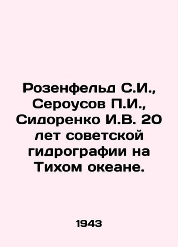 Rosenfeld S.I., Serousov g., Sidorenko I.V. 20 years of Soviet hydrography in the Pacific Ocean. In Russian /Rozenfeld S.I., Serousov g., Sidorenko I.V. 20 let sovetskoy gidrografii na Tikhom okeane. Vladivostok Hydro Department of the TOF 1943 10 p. We have thousands of titles and often several copies of each title may be available. Please feel free to contact us for a detailed description of the copies available. SKUalbd7598f877d4d9bee.