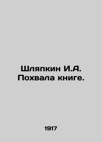 Shlyapkin I.A. Praise for the book. In Russian (ask us if in doubt)/Shlyapkin I.A. Pokhvala knige. Short description: In Russian (ask us if in doubt).Pg.: T. R. Golike and A. Wilborg 1917. 10 121c. We have thousands of titles and often several copies of each title may be available. Please feel free to contact us for a detailed description of the copies available. SKUalbd79107e87c6567a4