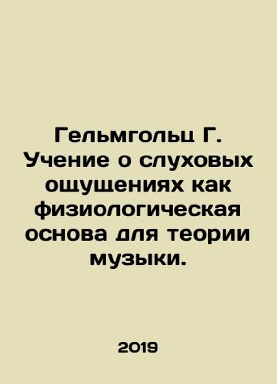 Helmholtz G. The Teaching of Hearing Senses as a Physiological Basis for Music Theory. In Russian /Gelmgolts G. Uchenie o slukhovykh oshchushcheniyakh kak fiziologicheskaya osnova dlya teorii muzyki. Series: Classics of Science M Librokom 2011, 594s.We have thousands of titles and often several copies of each title may be available. Please feel free to contact us for a detailed description of the copies available.SKUalb03c89ac7fce4f2e7.