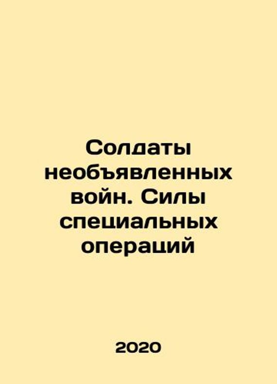 Soldiers of Undeclared Wars: Special Operations Forces In Russian (ask us if in doubt)/Soldaty neobyavlennykh voyn. Sily spetsial'nykh operatsiy. Short description: In Russian (ask us if in doubt).M. TsAST 2020. 287 p. We have thousands of titles and often several copies of each title may be available. Please feel free to contact us for a detailed description of the copies available. SKUalbd801bcd822aa8765
