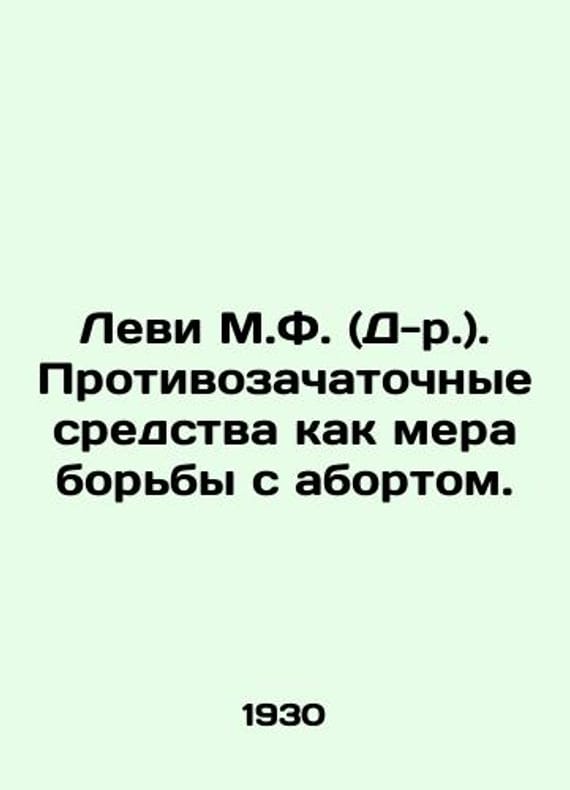 Levi M.F. (D). Contraception as an anti-abortion measure. In Russian /Levi M.F. (D-r.). Protivozachatochnye sredstva kak mera borby s abortom. Revised and supplemented edition of I M.G.U. by Dr. M.F. Levy. VII. Edited by the Institute of Sanitary Culture of the Mossavotdela. Moscow. Mossavotdela Publishing House. 1930. 62 p. We have thousands of titles and often several copies of each title may be available. Please feel free to contact us for a detailed description of the copies available. SKUalbd8659eda3fb5ef17.