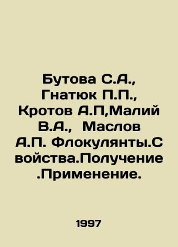 Butova S.A., Gnatyuk P.P., Krotov A.P, Maliy V.A., Maslov A.P. Flokulyanty.Properties In Russian /Butova S.A., Gnatyuk P.P., Krotov A.P,Maliy V.A., Maslov A.P. Flokulyanty.Svoystva.Poluchenie.Primenenie. M. Stroyizdat. 1997. 200s. We have thousands of titles and often several copies of each title may be available. Please feel free to contact us for a detailed description of the copies available. SKUalbd876e2187e37a38a.