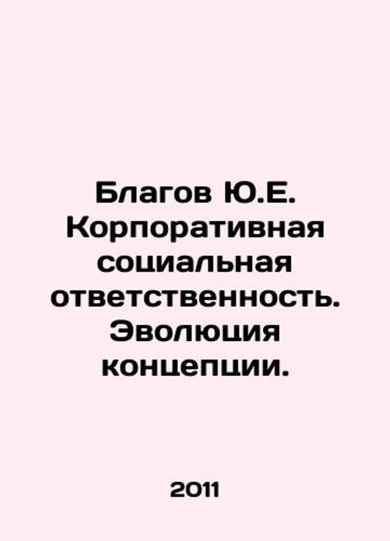 Blessed Y.E. Corporate Social Responsibility. The Evolution of Concept. In Russian /Blagov Yu.E. Korporativnaya sotsialnaya otvetstvennost. Evolyutsiya kontseptsii. St. Petersburg Higher School of Management 2011 272 pp. We have thousands of titles and often several copies of each title may be available. Please feel free to contact us for a detailed description of the copies available. SKUalbd885cb594cbdec16.