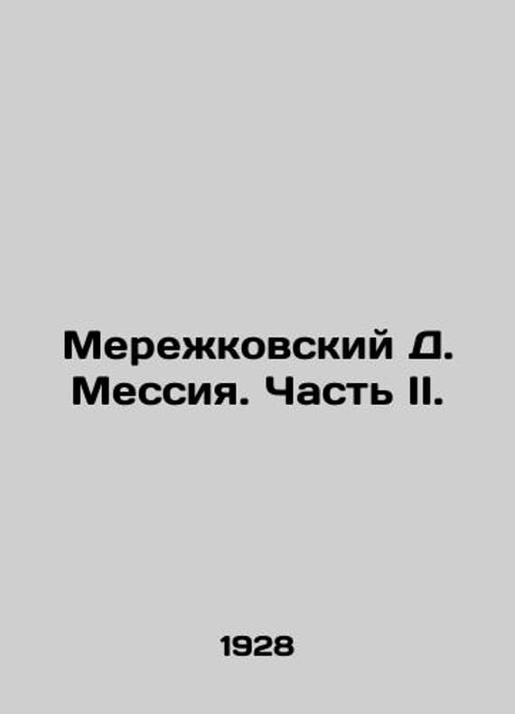 Merezhkovsky D. Messiah. Part II. In Russian /Merezhkovskiy D. Messiya. Chast II. Paris Renaissance 1928. 136 p. We have thousands of titles and often several copies of each title may be available. Please feel free to contact us for a detailed description of the copies available. SKUalbd8a9c6f364a56ab9.