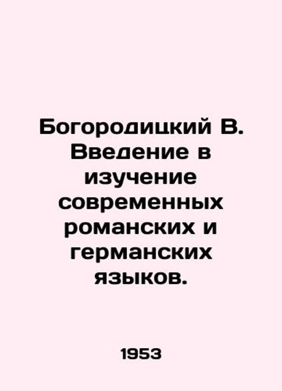 Bogoroditsky V. An Introduction to the Study of Modern Romance and German Languages. In Russian /Bogoroditskiy V. Vvedenie v izuchenie sovremennykh romanskikh i germanskikh yazykov. Moscow: Foreign Language Literature Publishing 1953. We have thousands of titles and often several copies of each title may be available. Please feel free to contact us for a detailed description of the copies available. SKUalbd8b43b8fadf90837.