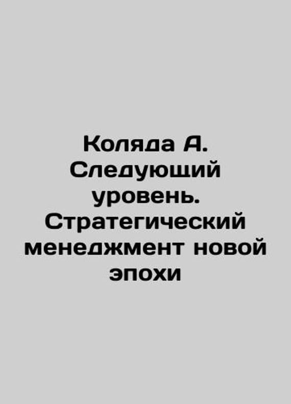 Kolyada A. The Next Level: Strategic Management of a New Era In Russian /Kolyada A. Sleduyushchiy uroven. Strategicheskiy menedzhment novoy epokhi M Alpin PRO 2023 616s. We have thousands of titles and often several copies of each title may be available. Please feel free to contact us for a detailed description of the copies available. SKUalbd8b90824bdea0948.