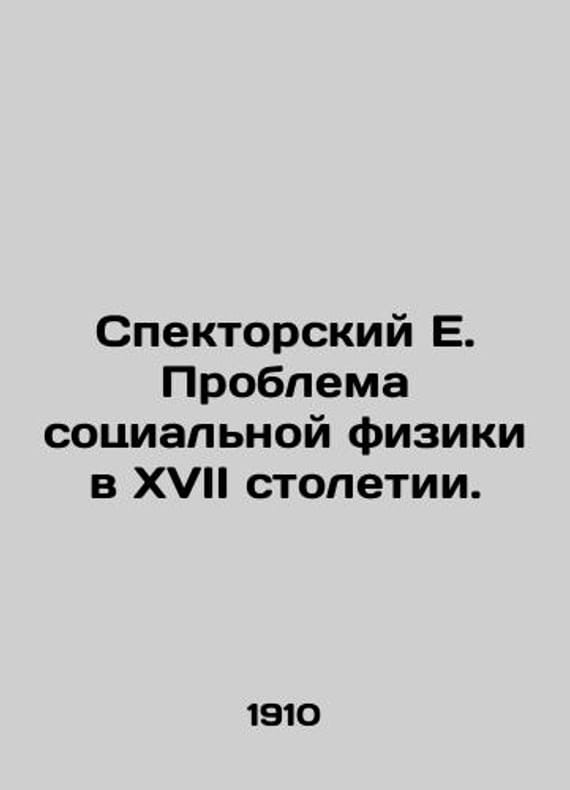 Spector E. The problem of social physics in the seventeenth century. In Russian /Spektorskiy E. Problema sotsialnoy fiziki v XVII stoletii. Volume one. A new worldview and a new theory of science. Warsaw. Typography of the Warsaw School District. 1910. 564 p. We have thousands of titles and often several copies of each title may be available. Please feel free to contact us for a detailed description of the copies available. SKUalbd8da3e5cd8f7ed6b.