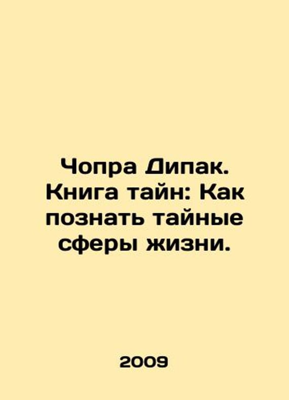 Chopra Deepak: The Book of Secrets: How to Know the Secret Spheres of Life. In Russian /Chopra Dipak. Kniga tayn: Kak poznat taynye sfery zhizni. Translated from English under the editorship of Stary I. M. Sofia 2009. 320 p. We have thousands of titles and often several copies of each title may be available. Please feel free to contact us for a detailed description of the copies available. SKUalbd8e6cdb8e019798b.