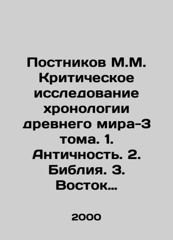 Postnikov M.M. Critical study of the chronology of the ancient world-3 volumes. 1. Antiquity. 2. The Bible. 3. The East and the Middle Ages. /Postnikov M.M. Kriticheskoe issledovanie khronologii drevnego mira-3 toma. 1. Antichnost'. 2. Bibliya. 3. Vostok i Srednevekov'e. Moscow Kraft and Lean. 2000. 444 and 398 and 398p. Postnikov Mikhail Mikhailovich-Professor-Mathematician Lenin Prize laureate-follower of N.A.Morozov predecessor of A.T.Fomenko etc. We have thousands of titles and often several copies of each title may be available. Please feel free to contact us for a detailed description of the copies available. SKUalbd9080a4e248ce443