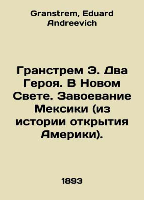 Granstrem E. Two Heroes. In the New World. The Conquest of Mexico (from the story of Americas discovery). In Russian /Granstrem E. Dva Geroya. V Novom Svete. Zavoevanie Meksiki (iz istorii otkrytiya Ameriki). Compiler for Falkenhorst E. Granstrom. St. Petersburg Typography by M. M. Stasyulevich, 1893. 312 p. We have thousands of titles and often several copies of each title may be available. Please feel free to contact us for a detailed description of the copies available. SKUalbd90f3fd5e5edea0c.