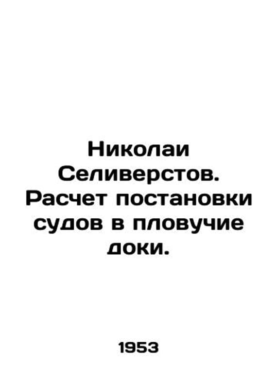 Nikolai Seliverstov. Calculation of putting vessels in the swimming docks. /Nikolai Seliverstov. Raschet postanovki sudov v plovuchie doki. Maritime Transport 1953. We have thousands of titles and often several copies of each title may be available. Please feel free to contact us for a detailed description of the copies available. SKUalbd916c7666eb3309e