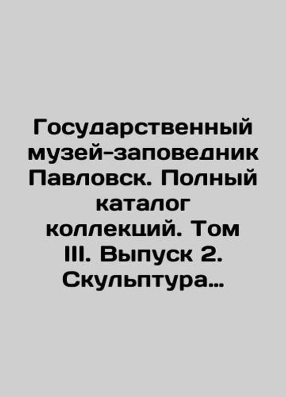 State Museum-Reserve Pavlovsk. Complete catalogue of collections. Volume III. Issue 2. Sculpture of Pavlovsk Park. In Russian /Gosudarstvennyy muzey-zapovednik Pavlovsk. Polnyy katalog kollektsiy. Tom III. Vypusk 2. Skulptura pavlovskogo parka. S.Pb.GMZ Pavlovsk 2011. 152 p. We have thousands of titles and often several copies of each title may be available. Please feel free to contact us for a detailed description of the copies available. SKUalbd9571c4e308fd3a3.