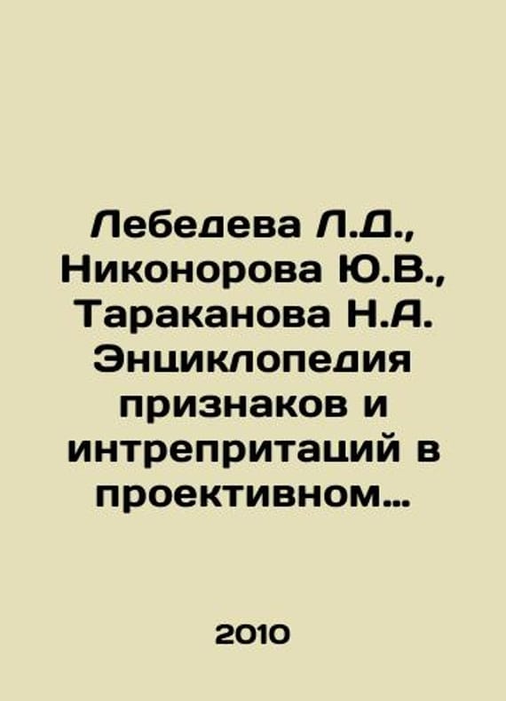 Lebedeva L.D., Nikonova Yu.V., Tarakanova N.A. Encyclopedia of Signs and Insights in Projective Drawing and Art Therapy. In Russian /Lebedeva L.D., Nikonorova Yu.V., Tarakanova N.A. Entsiklopediya priznakov i intrepritatsiy v proektivnom risovanii i art-terapii. S.Pb.Speech. 2010. 336s. We have thousands of titles and often several copies of each title may be available. Please feel free to contact us for a detailed description of the copies available. SKUalbd96cd1c268349adb.