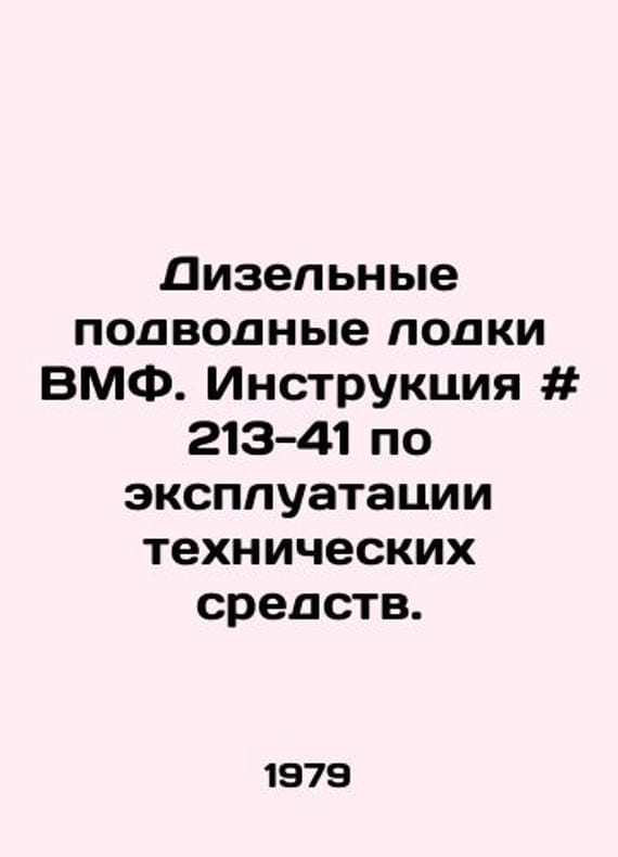 Diesel Submarines of the Navy. Instruction # 213-41 on the operation of technical means. In Russian /Dizelnye podvodnye lodki VMF. Instruktsiya # 213-41 po ekspluatatsii tekhnicheskikh sredstv. The Ministry of Defence of the USSR. M. Voenizdat, 1979. 272s. We have thousands of titles and often several copies of each title may be available. Please feel free to contact us for a detailed description of the copies available. SKUalbd97412d54757671d.
