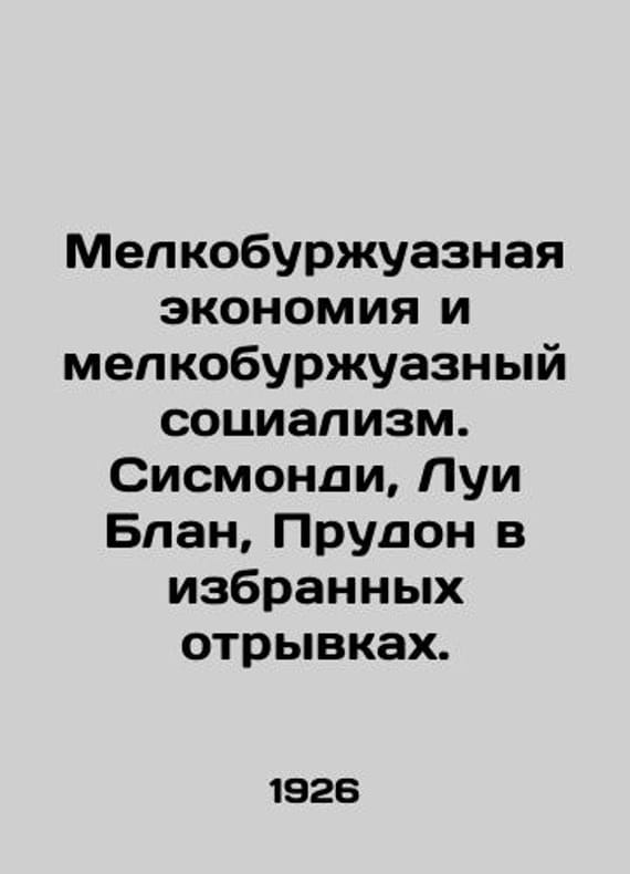 Petty-bourgeois economy and petty-bourgeois socialism. Sismondi, Louis Blanc, Proudhon in selected passages. In Russian /Melkoburzhuaznaya ekonomiya i melkoburzhuaznyy sotsializm. Sismondi, Lui Blan, Prudon v izbrannykh otryvkakh. Series: The Economic System of Socialism in Its Development. Edited by Prof. I. D. Udaltsov. Issue V. Compiled by V. M.-L. Semenov, State Publishing House, 1926. 276 p. We have thousands of titles and often several copies of each title may be available. Please feel free to contact us for a detailed description of the copies available. SKUalbd97a15b25cf3568f.
