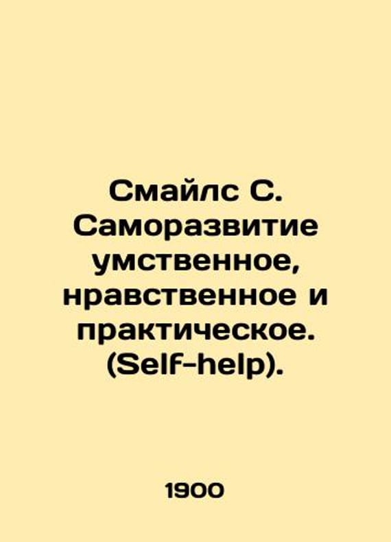 Smiles S. Self-development mental, moral, and practical. (Self-help). In Russian /Smayls S. Samorazvitie umstvennoe, nravstvennoe i prakticheskoe. (Self-help). With an additional article Russian figures. Translation and additions by Vladimir Wolfson. 2nd edition. St. Petersburg edition of the bookseller V.I. Gubinsky 1900. 407, VI, 3 p. We have thousands of titles and often several copies of each title may be available. Please feel free to contact us for a detailed description of the copies available. SKUalbd9aec1b0d1643885.