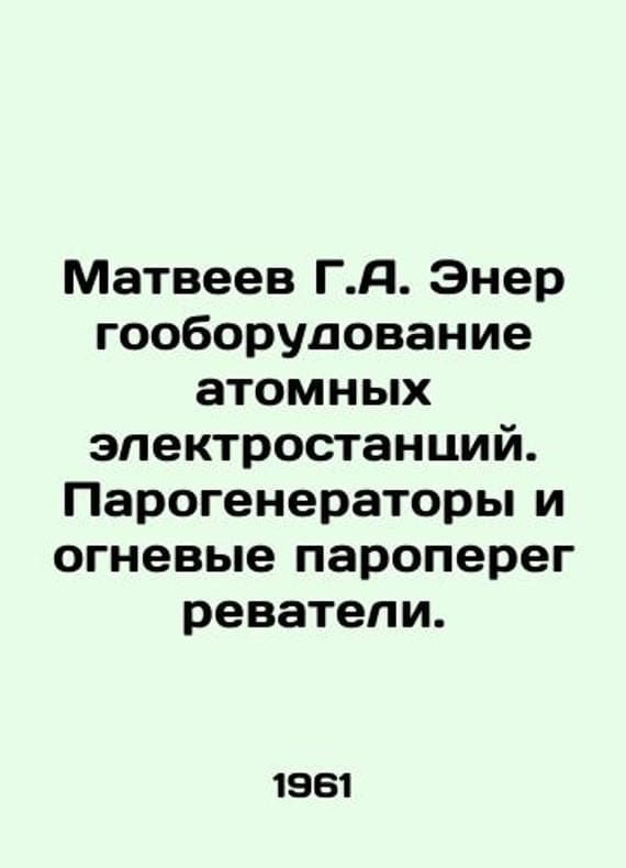 Matveev G.A. Nuclear Power Equipment. Steam Generators and Fire Steam Reheaters. In Russian /Matveev G.A. Energooborudovanie atomnykh elektrostantsiy. Parogeneratory i ognevye paroperegrevateli. Under the editorship of I.I. Novikov, Corresponding Member of the Academy of Sciences of the USSR. Series: Fundamentals of Nuclear Engineering. M. Gosizdat of Literature in the Field of Atomic Science and Technology, 1961. 200 p. We have thousands of titles and often several copies of each title may be available. Please feel free to contact us for a detailed description of the copies available. SKUalbd9b82bc631ad6a39.