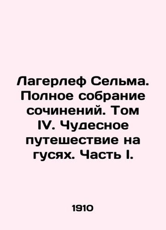 Lagerlof Selma. A Complete Collection of Works. Volume IV. A Wonderful Journey on the Geese, Part I. In Russian /Lagerlef Selma. Polnoe sobranie sochineniy. Tom IV. Chudesnoe puteshestvie na gusyakh. Chast I. Translation by M. Barsukova, A. Koiransky. Second edition. Moscow 1910. We have thousands of titles and often several copies of each title may be available. Please feel free to contact us for a detailed description of the copies available. SKUalbda31fd06194fdf9d.
