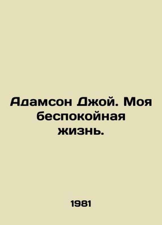 Adamson Joy: My restless life. In Russian /Adamson Dzhoy. Moya bespokoynaya zhizn. Abbreviated translation from English of V. V. Agafonov, G. M. Ulitskoy. An afterword by V. E. Flint. Artist V. B. Solovyev. Moscow. Progress. 1981. 224 p. We have thousands of titles and often several copies of each title may be available. Please feel free to contact us for a detailed description of the copies available. SKUalbda41f20ef6e1a5f6.
