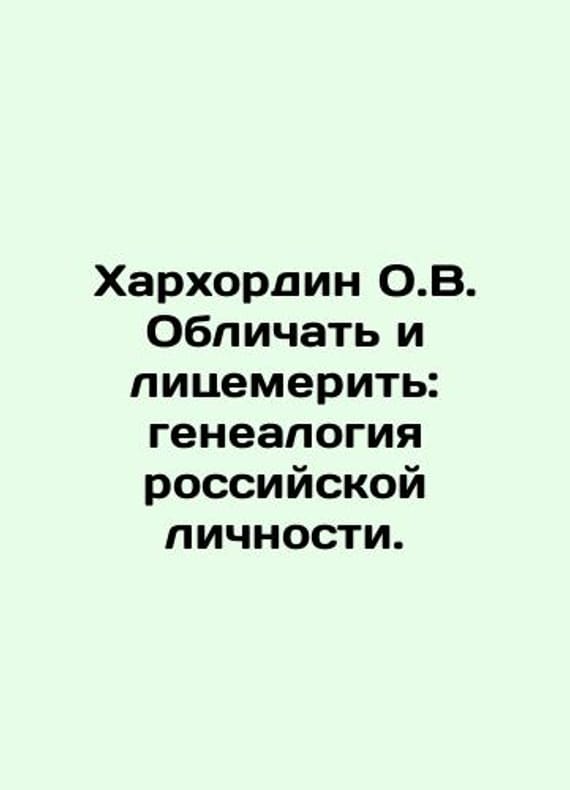 Harkhordin O. To Blame and Hypocrite: The Genealogy of the Russian Personality. In Russian /Kharkhordin O. Oblichat i litsemerit: genealogiya rossiyskoy lichnosti. Publishing House of the European University in St. Petersburg 2021, 508 p. We have thousands of titles and often several copies of each title may be available. Please feel free to contact us for a detailed description of the copies available. SKUalb55d34a80832b488a.