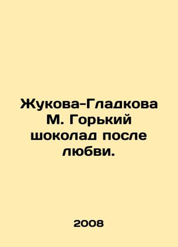 Zhukova-Gladkova M. Bitter chocolate after love. In Russian /Zhukova-Gladkova M. Gorkiy shokolad posle lyubvi. Detective Ladies Club (series) M Exmo 2008.We have thousands of titles and often several copies of each title may be available. Please feel free to contact us for a detailed description of the copies available. SKUalbda425fae6edfa59f.