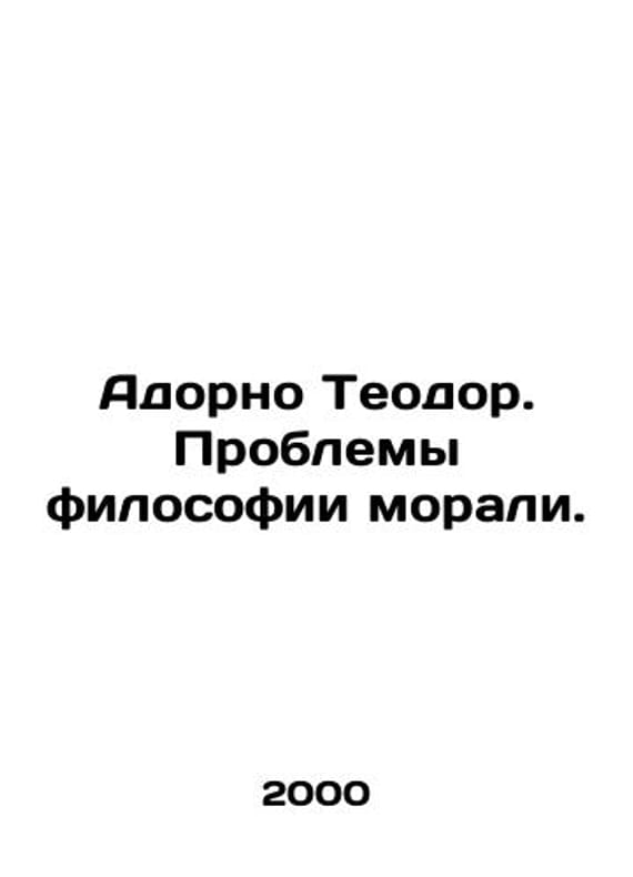 Adorno Theodore: The Problems of Moral Philosophy. In Russian (ask us if in doubt)./Adorno Teodor. Problemy filosofii morali. Series: Library of Ethical Thought Translator Mikhail Khorkov M. Republic 2000. 240 p. SKUalb2c517f91cdbf34fb.