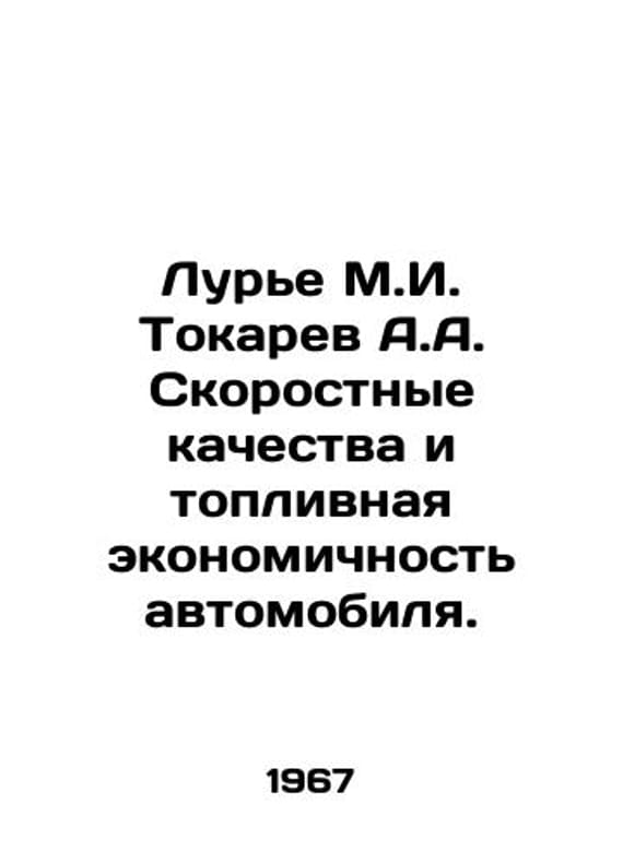 Lurie M.I. Tokarev A.A. Car Speed and Fuel Economy. In Russian /Lure M.I. Tokarev A.A. Skorostnye kachestva i toplivnaya ekonomichnost avtomobilya. Lurie M.I. Tokarev A.A. Car Speed and Fuel Economy. 1967. We have thousands of titles and often several copies of each title may be available. Please feel free to contact us for a detailed description of the copies available. SKUalbdb20534acee64e4c.