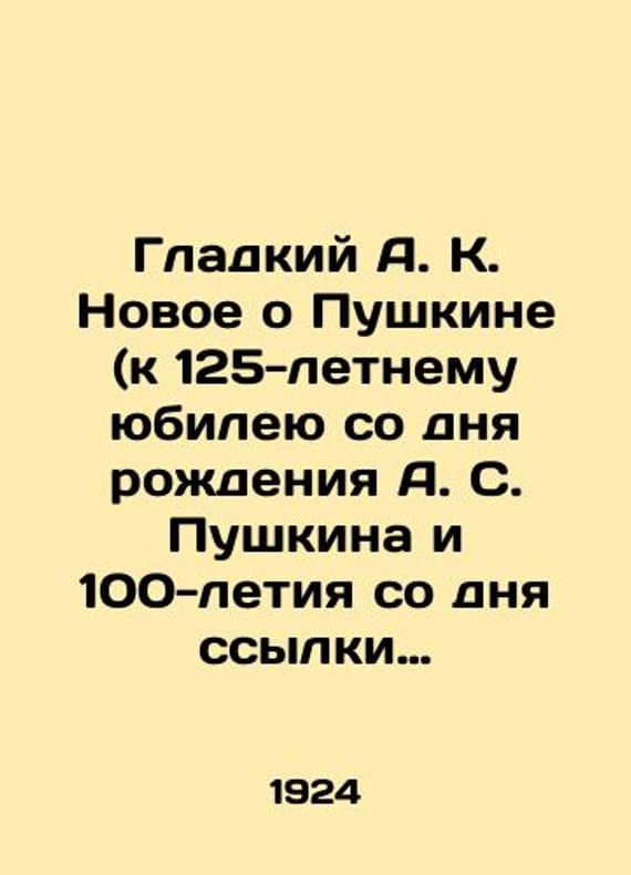 Gladky A. K. New about Pushkin (to the 125th anniversary of Pushkins birth and the 100th anniversary of the poets exile to the village of Mikhailovskoye, Pskov province). In Russian /Gladkiy A. K. Novoe o Pushkine (k 125-letnemu yubileyu so dnya rozhdeniya A. S. Pushkina i 100-letiya so dnya ssylki poeta v s. Mikhaylovskoe, Pskovskoy gubernii). Pskov Edition of HEALTH 2 C. We have thousands of titles and often several copies of each title may be available. Please feel free to contact us for a detailed description of the copies available. SKUalbdb25e967a83c3304.