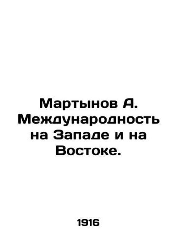 Martynov A. Internationalism in the West and the East. In Russian /Martynov A. Mezhdunarodnost na Zapade i na Vostoke. Pg. -M. ill.i 1916. We have thousands of titles and often several copies of each title may be available. Please feel free to contact us for a detailed description of the copies available. SKUalbdb2cb9d64a853c37.