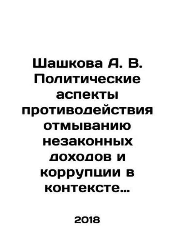 Shashkova A. V. Political aspects of combating money laundering and corruption in the context of interaction between the state and corporations. In Russian /Shashkova A. V. Politicheskie aspekty protivodeystviya otmyvaniyu nezakonnykh dokhodov i korruptsii v kontekste vzaimodeystviya gosudarstva i korporatsiy. M. MGIMO-University 2018. 624 p. We have thousands of titles and often several copies of each title may be available. Please feel free to contact us for a detailed description of the copies available. SKUalbdb44f80e283c1242.