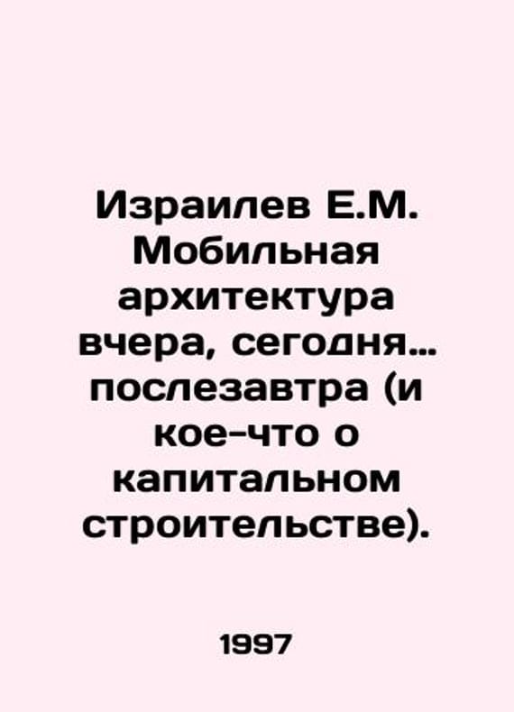 Israeli E.M. Mobile architecture yesterday, today, and the day after tomorrow (and something about capital construction). In Russian /Izrailev E.M. Mobilnaya arkhitektura vchera, segodnya poslezavtra (i koe-chto o kapitalnom stroitelstve). SPb Stroyizdat SPb 1997. We have thousands of titles and often several copies of each title may be available. Please feel free to contact us for a detailed description of the copies available. SKUalbdb46d410de8e8905.