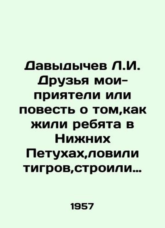 Davydychev L.I. My friends or the story of how the children lived in the Nizhniye roosters, caught tigers, built an all-terrain vehicle, were guilty, and what it turned out to be In Russian /Davydychev L.I. Druzya moi-priyateli ili povest o tom,kak zhili rebyata v Nizhnikh Petukhakh,lovili tigrov,stroili vezdekhod,provinilis i chto iz etogo poluchilos Novel, artist Perepech B.G. Perm Perm Book Publishing House 1957.We have thousands of titles and often several copies of each title may be available. Please feel free to contact us for a detailed description of the copies available. SKUalbdb5fa570089ef1db.