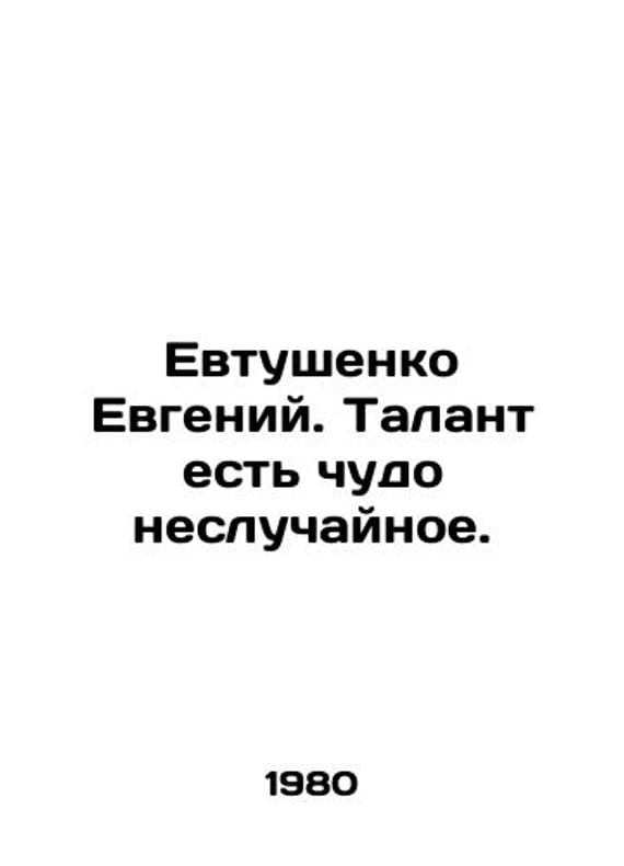 Evgeny Yevtushenko. Talent is no accident. In Russian /Evtushenko Evgeniy. Talant est chudo nesluchaynoe. Book of Articles. Moscow. Publishing House of Soviet Writers. 1980. 440s. We have thousands of titles and often several copies of each title may be available. Please feel free to contact us for a detailed description of the copies available. SKUalbdb933409d5e0c82a.