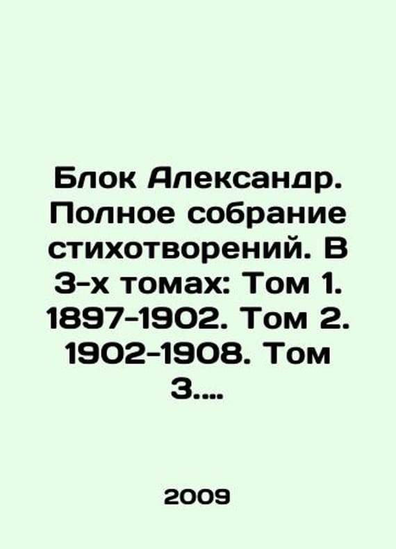 Alexander Block. Complete collection of poems. In 3 volumes: Volume 1. 1897-1902. Volume 2. 1902-1908. Volume 3. 1909-1921. In Russian /Blok Aleksandr. Polnoe sobranie stikhotvoreniy. V 3-kh tomakh: Tom 1. 1897-1902. Tom 2. 1902-1908. Tom 3. 1909-1921. Russian Academy of Sciences, Institute of Russian Literature (Pushkinsky House). Moscow, Progress-Pleiada, 2009-2011, 440,456,360 p. We have thousands of titles and often several copies of each title may be available. Please feel free to contact us for a detailed description of the copies available. SKUalbdb9bcdf0d996e531.