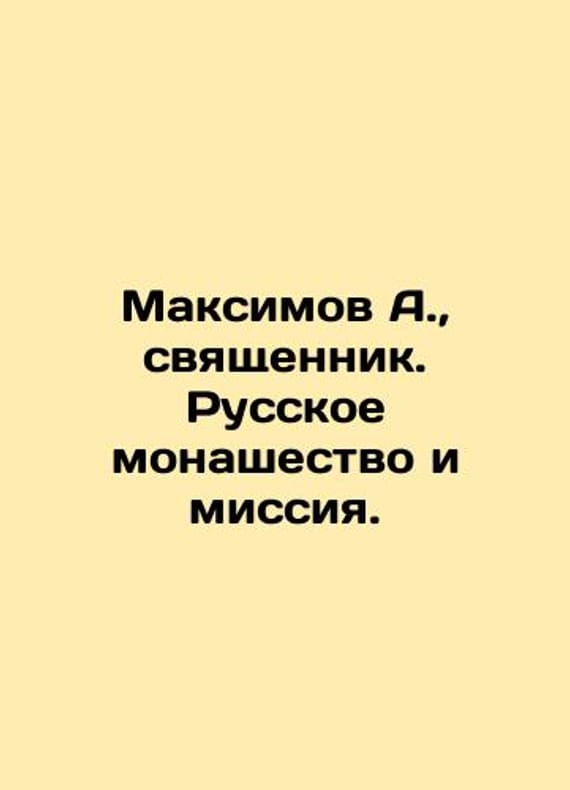Maksimov A., Priest. Russian Monasticism and Mission. In Russian /Maksimov A., svyashchennik. Russkoe monashestvo i missiya. M. BBI 2022. 232 p. We have thousands of titles and often several copies of each title may be available. Please feel free to contact us for a detailed description of the copies available. SKUalbdbea676468282fae.