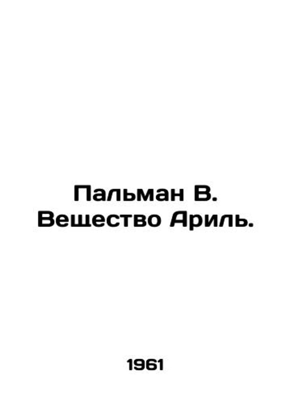 Palman B. The substance of Aril. In Russian /Palman V. Veshchestvo Aril. Krasnodar. Krasnodar Book Publishing House 1961. We have thousands of titles and often several copies of each title may be available. Please feel free to contact us for a detailed description of the copies available. SKUalbdbf06c17feaccf21.